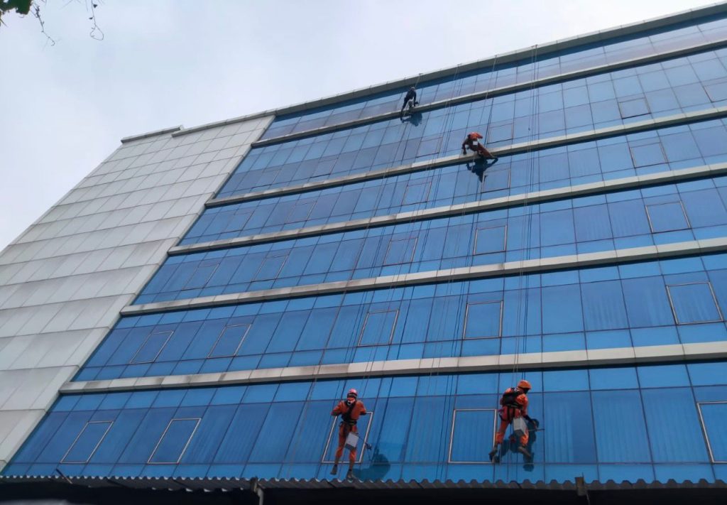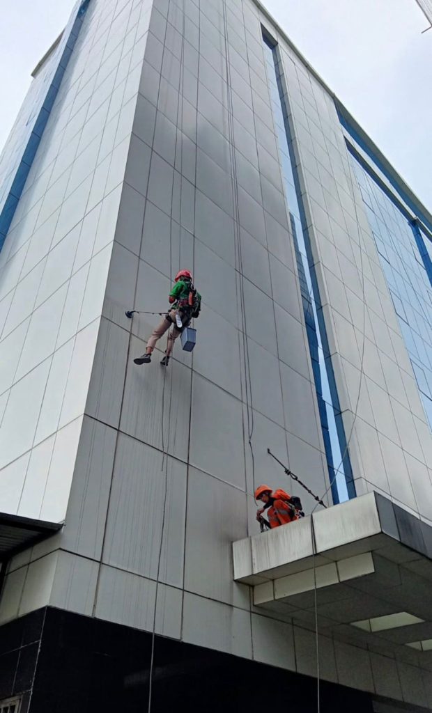 - Pembersihan kaca dan dinding luar gedung (ACP, marmer, beton).
